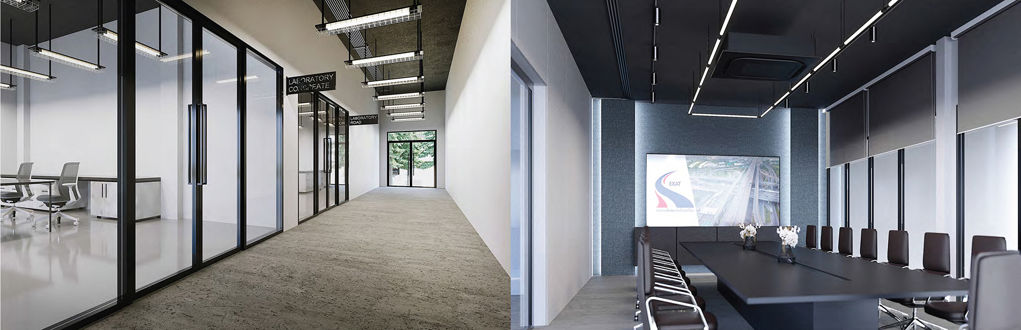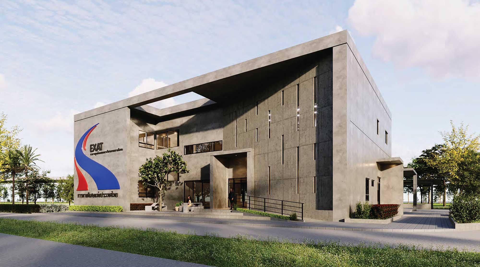 The design concept of the Expressway Authority of Thailand's Expressway Engineering Testing Center is based on a 5x5 grid. The building's functions are clearly divided, ensuring efficient use of space. The designer incorporated innovations from various structures while adding unique elements to the building’s form, giving it a distinctive and modern appearance. This design reflects the organization’s image of cutting-edge simplicity while creating an inviting atmosphere both inside and outside to enhance the user experience.