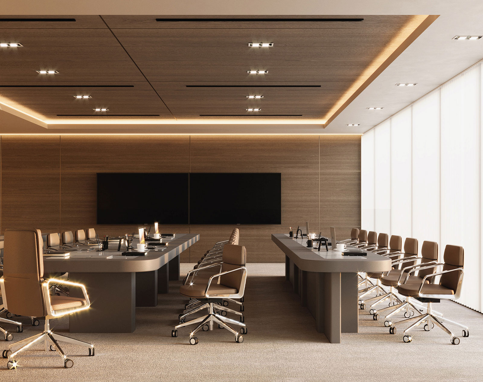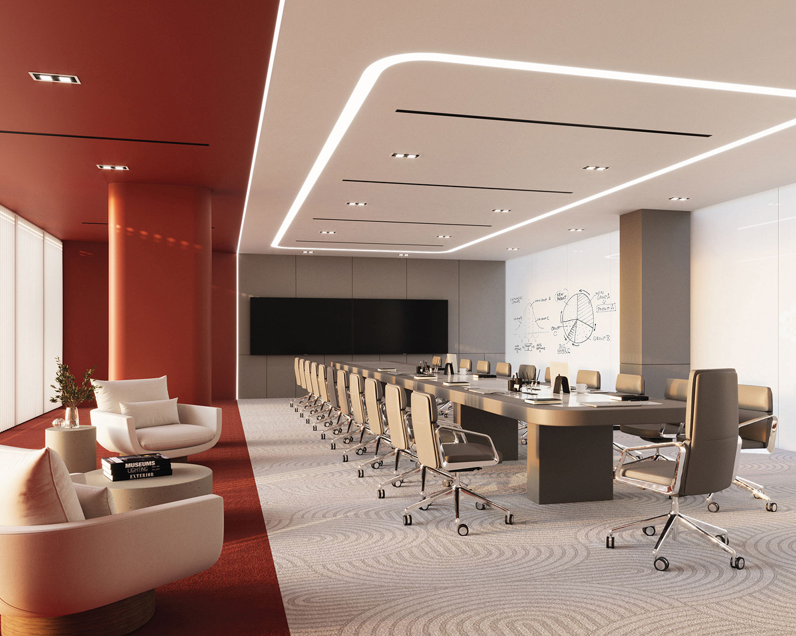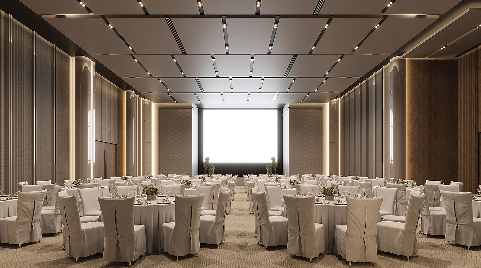 The design of the Samut Sakhon Industrial Estate Office Building was inspired by the provincial emblem of Samut Sakhon, which features a Chinese junk sailing on the sea, with a factory and chimney in the background—symbolizing the region’s prosperity from past to present. This emblem became an integral part of the building’s design. The designer drew inspiration from its imagery, incorporating the curved shape of the junk’s sail into the roof and the sunshade at the front of the building.