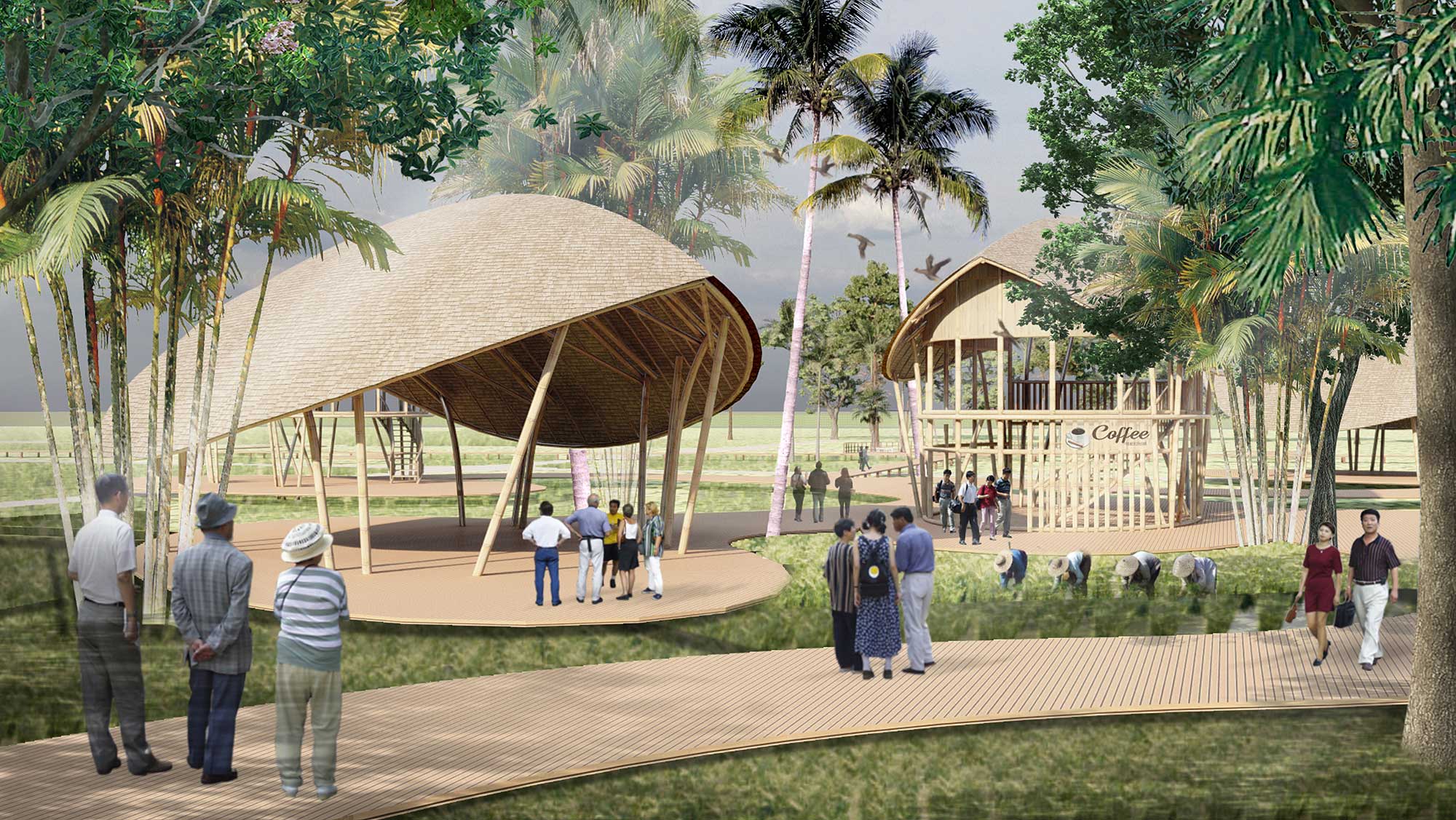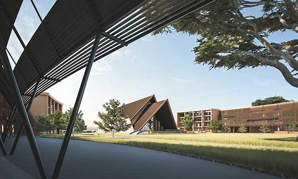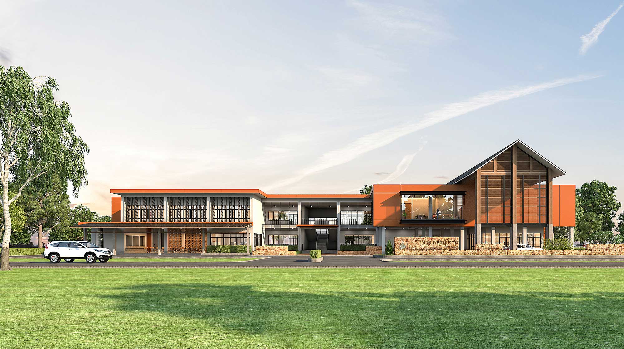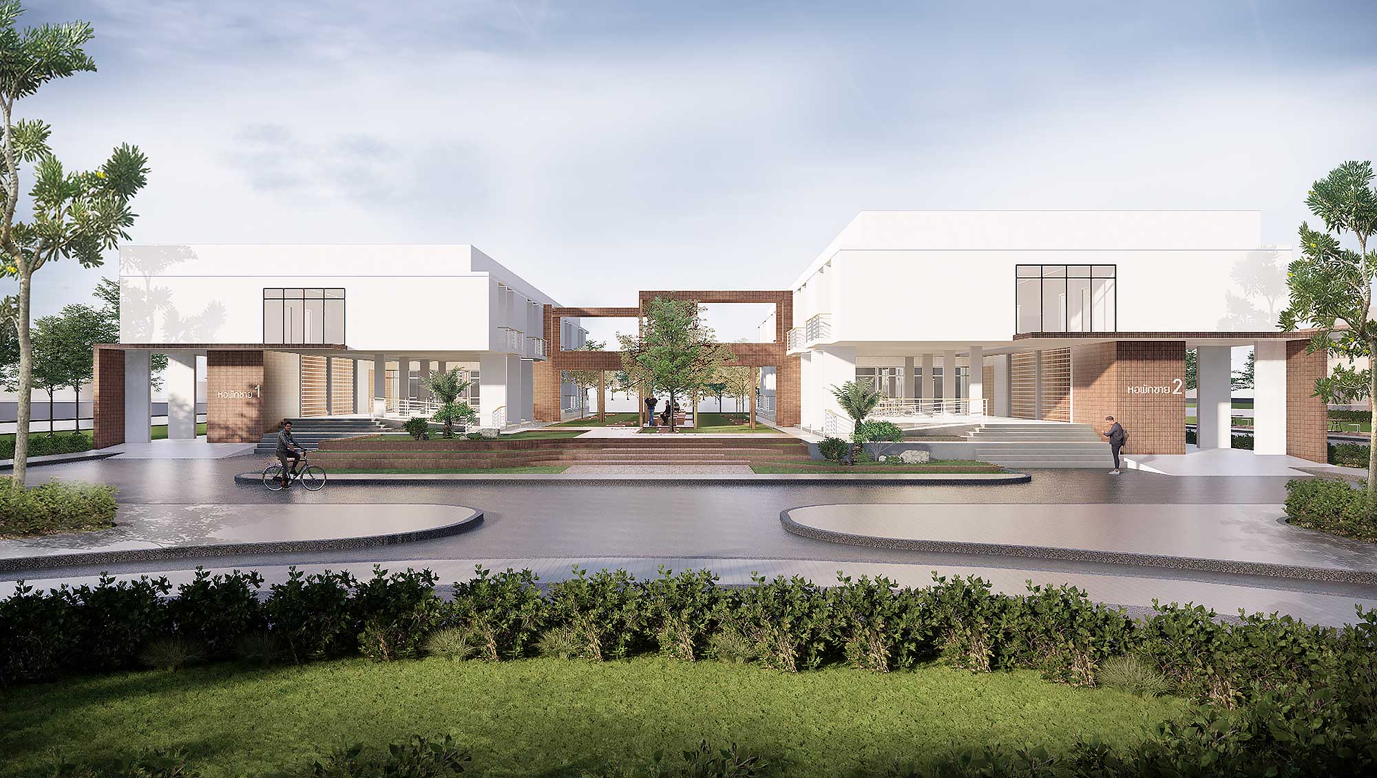 The fundamental design concept of Rajamangala University of Technology Isan Roi Et Campus in Thung Kula Rong Hai was inspired by traditional Northeastern rice barns, which are elevated 1–2 meters above the ground. The building features a rectangular shape, similar to these barns, and incorporates comparable materials. The designer aimed to use locally sourced materials to reflect the region's architectural heritage, emphasizing the unique identity of Thung Kula Rong Hai.