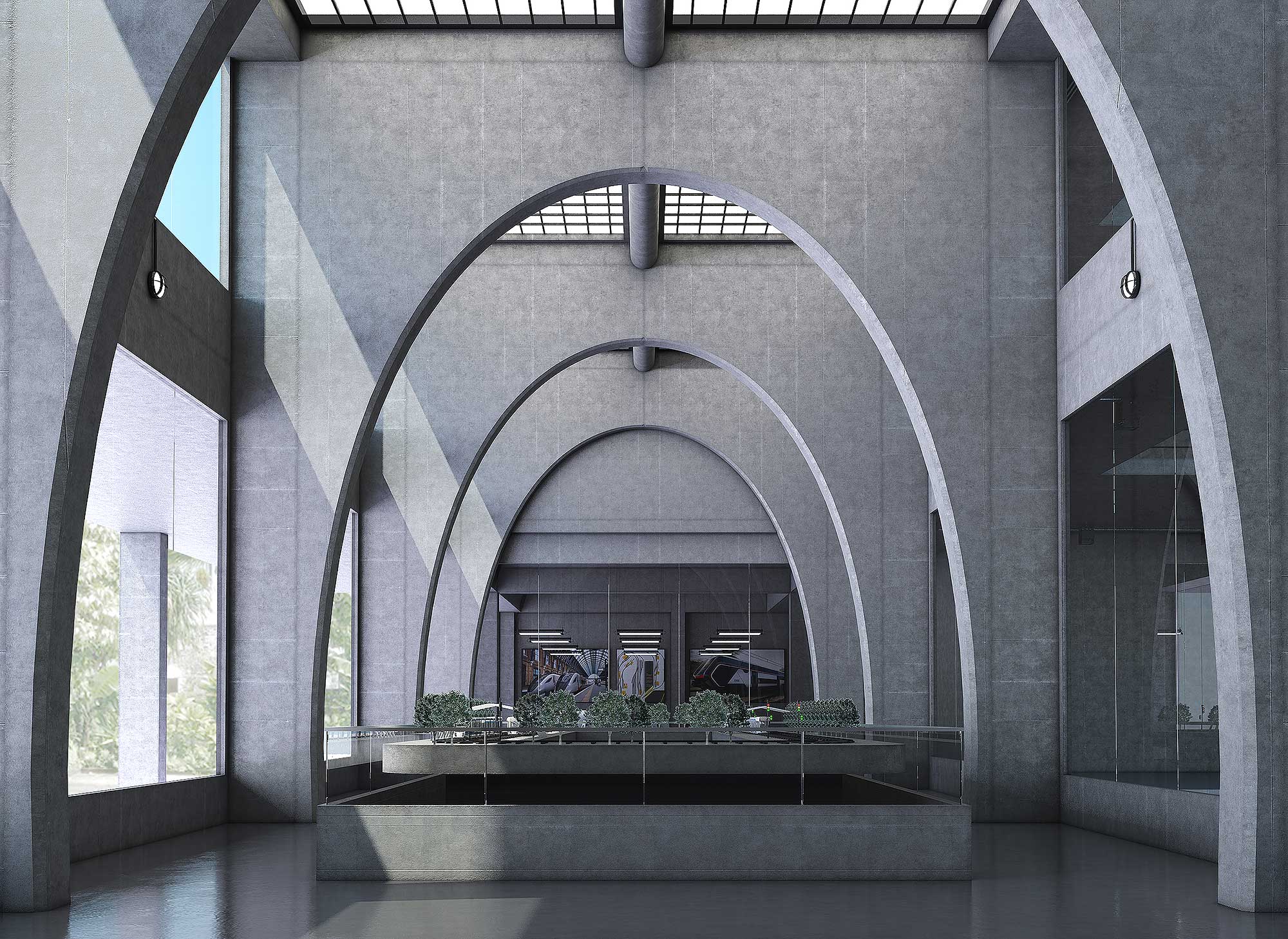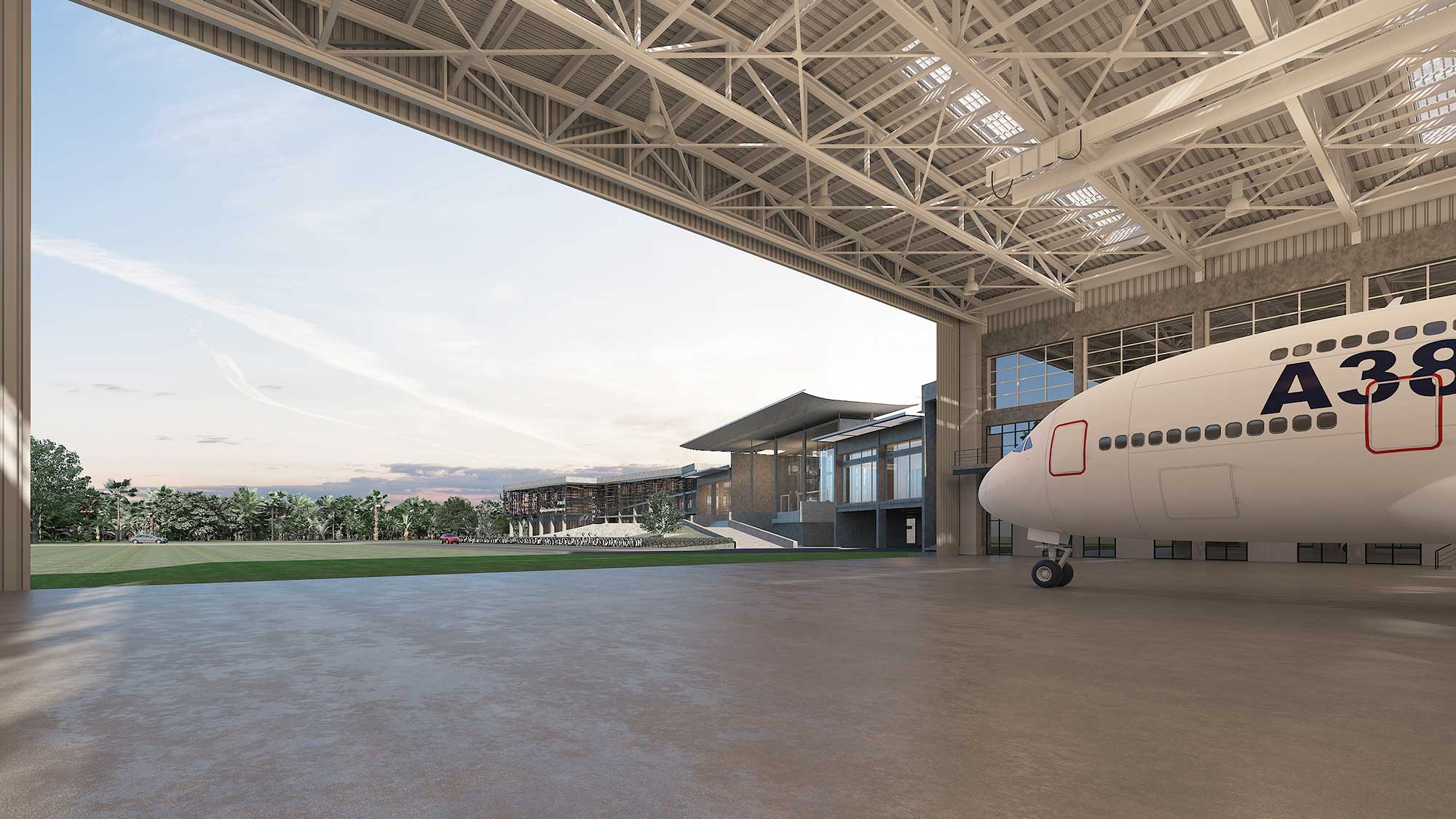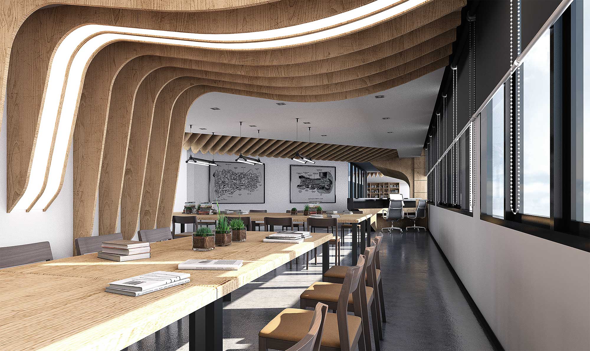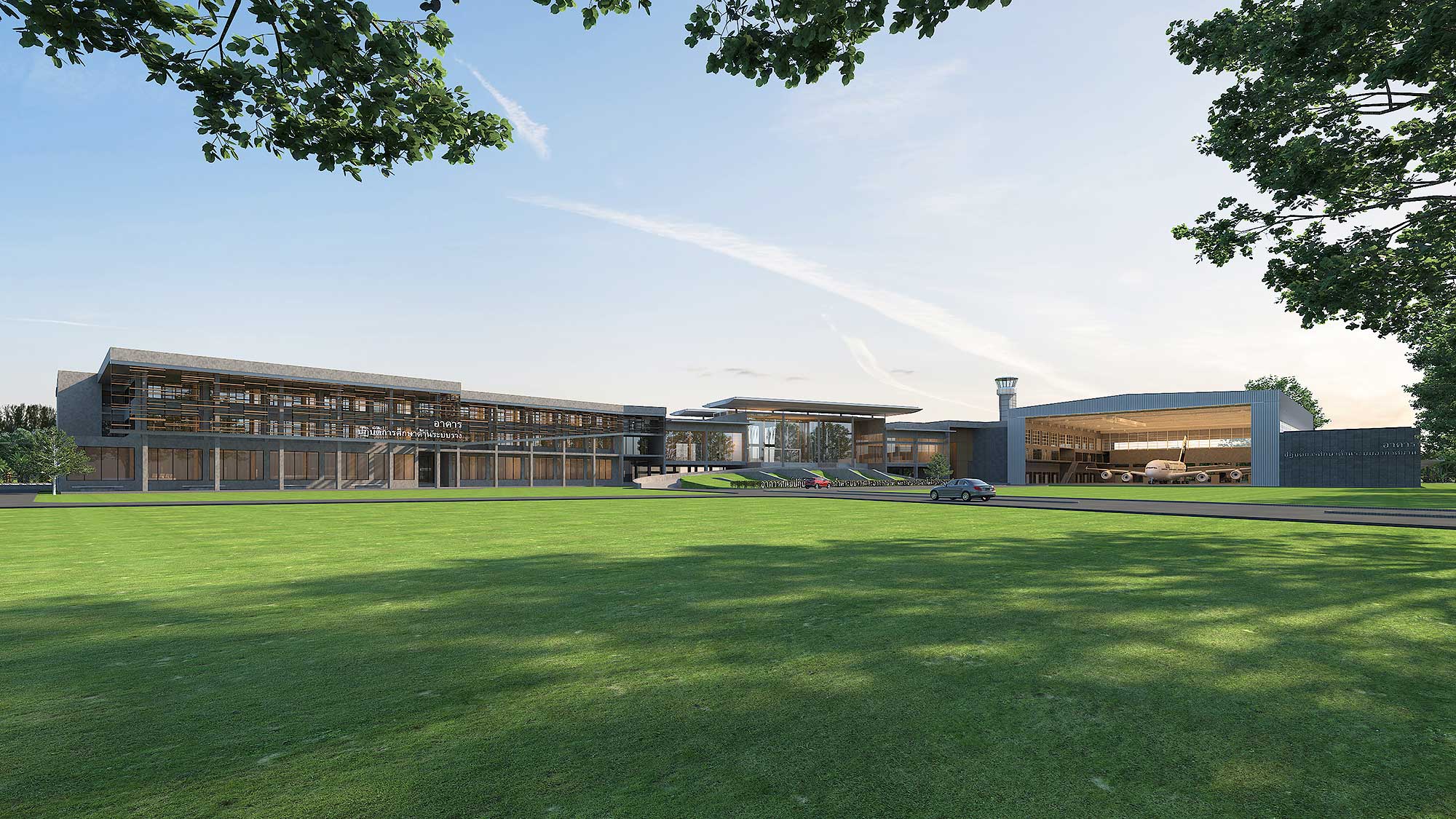 The Railway and Aircraft Education Center Building was designed to support students and train aviation personnel. Its design incorporates flexibility, allowing for future expansion of usable spaces. A central building connects two wings, facilitating shared use of common areas. The design concept features curves that reflect the shape of trains, along with distinctive modern elements that create an appropriate interior atmosphere.