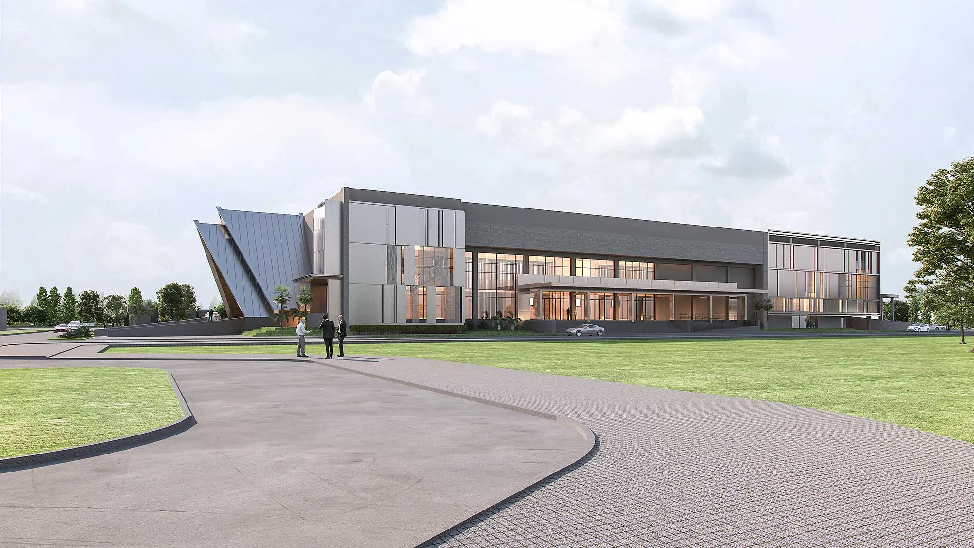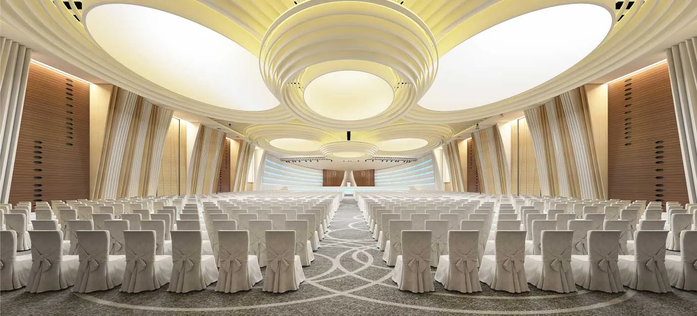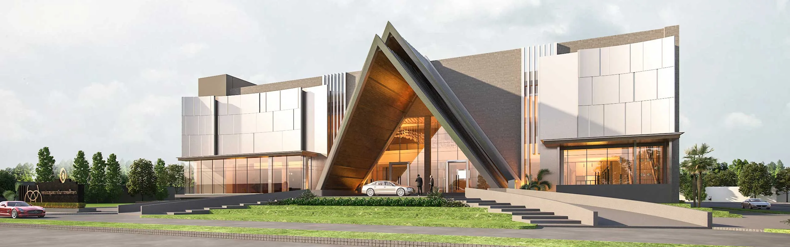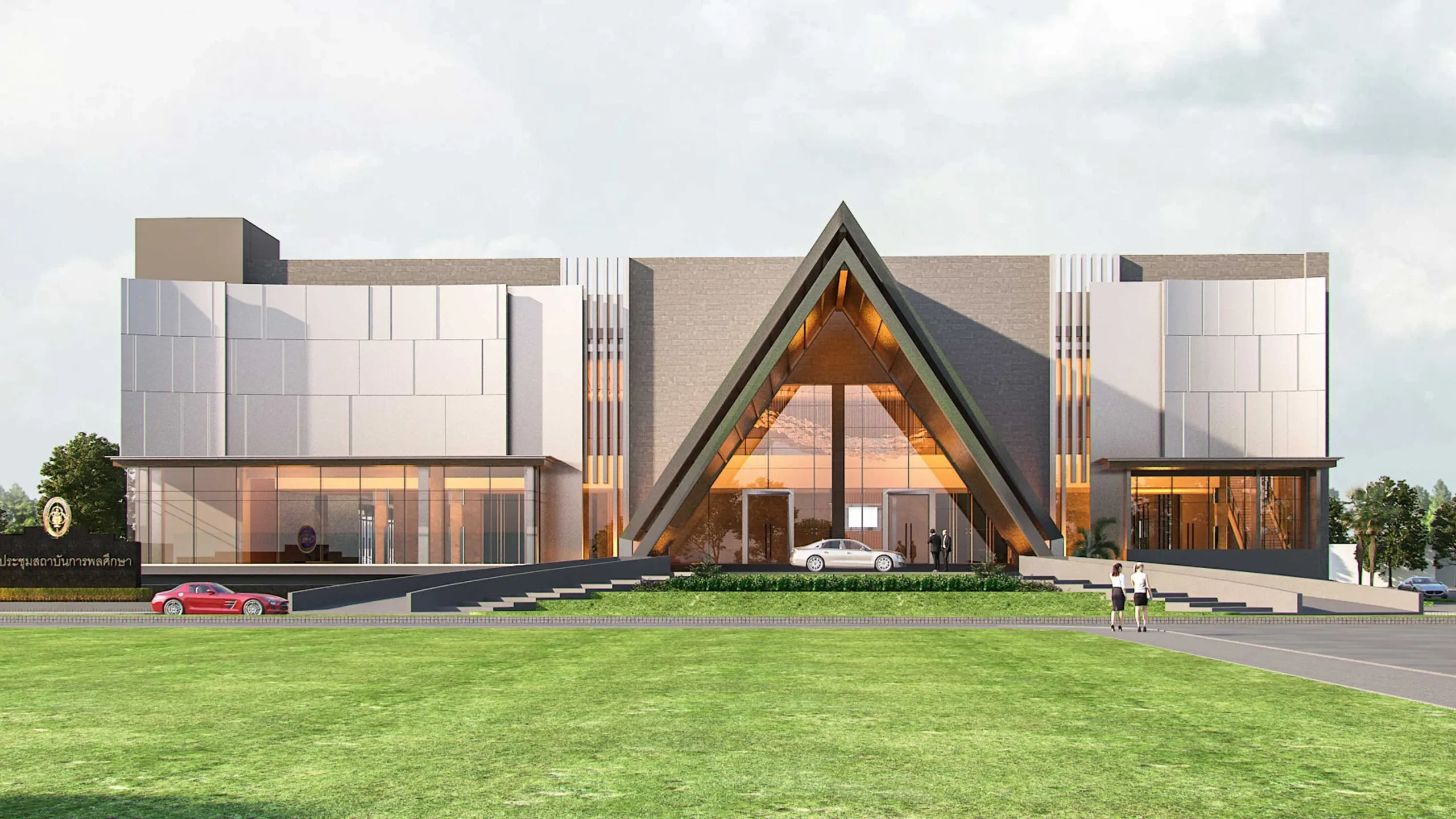 การออกแบบภาพรวมของโครงการอาคารหอประชุม มหาวิทยาลัยการกีฬาแห่งชาติ ได้คำนึงถึงความสอดคล้องของอาคารกับสภาพแวดล้อมโดยรอบของสถาบัน ที่เน้นให้มีความกลมกลืนกับบริบทของกลุ่มอาคารข้างเคียง และให้อาคารหอประชุมเป็นจุดเด่นของโครงการ ทั้งนี้ตัวอาคารสถาปัตยกรรม ออกแบบผ่านแนวคิดอาคารร่วมสมัย เพื่อสื่อถึงภาพลักษณ์ของสถาบันที่มุ่งเน้นความเป็นสากล ภายใต้พื้นที่ใช้งานที่เหมาะสมกับการรองรับผู้ใช้งานเป็นจำนวนมาก